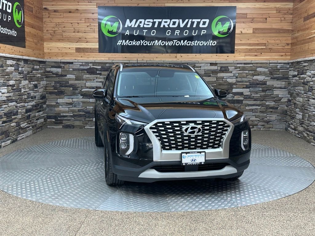 2022 Hyundai Palisade SEL Certified. Abyss Black Pearl This Palisade SEL is nicely equipped with Option Group 01, Hyundai Certified Used Vehicles Certified, Radio: AM/FM/MP3 Display Audio, 3.648 Axle Ratio, 3rd row seats: split-bench, 4-Wheel Disc Brakes, 6 Speakers, ABS brakes, Air Conditioning, Alloy wheels, AM/FM radio, Apple CarPlay & Android Auto, Auto High-beam Headlights, Auto-dimming Rear-View mirror, Automatic temperature control, Brake assist, Bumpers: body-color, Cargo Cover/Screen, Cargo Net, Cargo Tray, Carpeted Floor Mats, Cloth Seat Trim, Delay-off headlights, Driver door bin, Driver vanity mirror, Dual front impact airbags, Dual front side impact airbags, Electronic Stability Control, Four wheel independent suspension, Front anti-roll bar, Front Bucket Seats, Front Center Armrest, Front dual zone A/C, Front reading lights, Fully automatic headlights, Garage door transmitter: HomeLink, Heated door mirrors, Heated Front Bucket Seats, Heated front seats, Illuminated entry, Knee airbag, Low tire pressure warning, Mudguards, Occupant sensing airbag, Outside temperature display, Overhead airbag, Overhead console, Panic alarm, Passenger door bin, Passenger vanity mirror, Power door mirrors, Power driver seat, Power moonroof, Power steering, Power windows, Radio data system, Rear air conditioning, Rear anti-roll bar, Rear audio controls, Rear reading lights, Rear window defroster, Rear window wiper, Reclining 3rd row seat, Remote keyless entry, Security system, Speed control, Speed-sensing steering, Split folding rear seat, Spoiler, Steering wheel mounted audio controls, Tachometer, Telescoping steering wheel, Tilt steering wheel, Traction control, Trip computer, Turn signal indicator mirrors, Variably intermittent wipers, and Wheels: 18" x 7.5J Machine Finish Alloy. Radio: AM/FM/MP3 Display Audio.