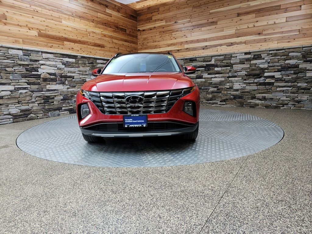 2022 Hyundai Tucson Limited Certified. Calypso Red This Tucson Limited is nicely equipped with Option Group 01, Hyundai Certified Used Vehicles Certified, AWD, 3.648 Axle Ratio, 4-Wheel Disc Brakes, 8 Speakers, ABS brakes, Air Conditioning, Alloy wheels, AM/FM radio: SiriusXM, Apple CarPlay & Android Auto, Auto High-beam Headlights, Auto-dimming Rear-View mirror, Automatic temperature control, Brake assist, Bumpers: body-color, Cargo Net, Carpeted Floor Mats, Delay-off headlights, Driver door bin, Driver vanity mirror, Dual front impact airbags, Dual front side impact airbags, Electronic Stability Control, Emergency communication system: Blue Link Connected Car Service (3-year complimentary subscription), Four wheel independent suspension, Front anti-roll bar, Front Bucket Seats, Front Center Armrest, Front dual zone A/C, Front reading lights, Fully automatic headlights, Garage door transmitter: HomeLink, Heated & Ventilated Front Bucket Seats, Heated door mirrors, Heated front seats, Heated rear seats, Heated steering wheel, Illuminated entry, Leather Seat Trim, Low tire pressure warning, Memory seat, Navigation System, Occupant sensing airbag, Outside temperature display, Overhead airbag, Overhead console, Panic alarm, Passenger door bin, Passenger vanity mirror, Power door mirrors, Power driver seat, Power Liftgate, Power moonroof, Power passenger seat, Power steering, Power windows, Radio data system, Radio: Bose Premium w/AM/FM/HD/SiriusXM Audio System, Rain sensing wipers, Rear anti-roll bar, Rear reading lights, Rear seat center armrest, Rear window defroster, Rear window wiper, Remote keyless entry, Roof Rack Cross Rails, Roof rack: rails only, Security system, Speed control, Split folding rear seat, Spoiler, Steering wheel mounted audio controls, Tachometer, Telescoping steering wheel, Tilt steering wheel, Traction control, Trip computer, Turn signal indicator mirrors, Variably intermittent wipers, Ventilated front seats, Wheel Locks, and Wheels: 19" x 7.5J" Machine-Face Finish Alloy. AWD.