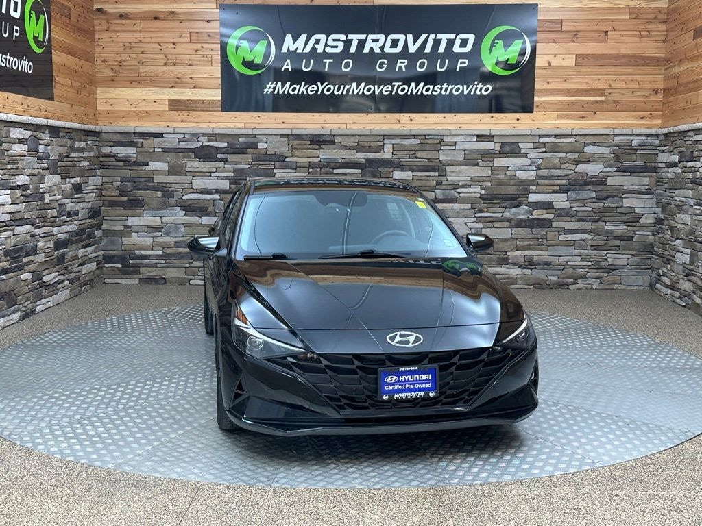 2023 Hyundai Elantra SEL Certified. Phantom Black This Elantra SEL is nicely equipped with Option Group 01, Hyundai Certified Used Vehicles Certified, 16" x 6.5J Alloy Wheels, 4-Wheel Disc Brakes, 6 Speakers, ABS brakes, Air Conditioning, Alloy wheels, AM/FM radio: SiriusXM, Apple CarPlay & Android Auto, Auto High-beam Headlights, Automatic temperature control, Brake assist, Bumpers: body-color, Carpeted Floor Mats, Cloth Seat Trim, Delay-off headlights, Driver door bin, Driver vanity mirror, Dual front impact airbags, Dual front side impact airbags, Electronic Stability Control, Emergency communication system: Blue Link Connected Car Service (3-year complimentary subscription), Exterior Parking Camera Rear, First Aid Kit, Front anti-roll bar, Front Bucket Seats, Front Center Armrest, Front dual zone A/C, Front reading lights, Front wheel independent suspension, Fully automatic headlights, Illuminated entry, Low tire pressure warning, Mudguards, Occupant sensing airbag, Outside temperature display, Overhead airbag, Overhead console, Panic alarm, Passenger door bin, Passenger vanity mirror, Power door mirrors, Power steering, Power windows, Radio: AM/FM/HD/SiriusXM Display Audio, Rear Bumper Applique, Rear window defroster, Remote keyless entry, Security system, Speed control, Speed-sensing steering, Steering wheel mounted audio controls, Tachometer, Telescoping steering wheel, Tilt steering wheel, Traction control, Trip computer, and Variably intermittent wipers.