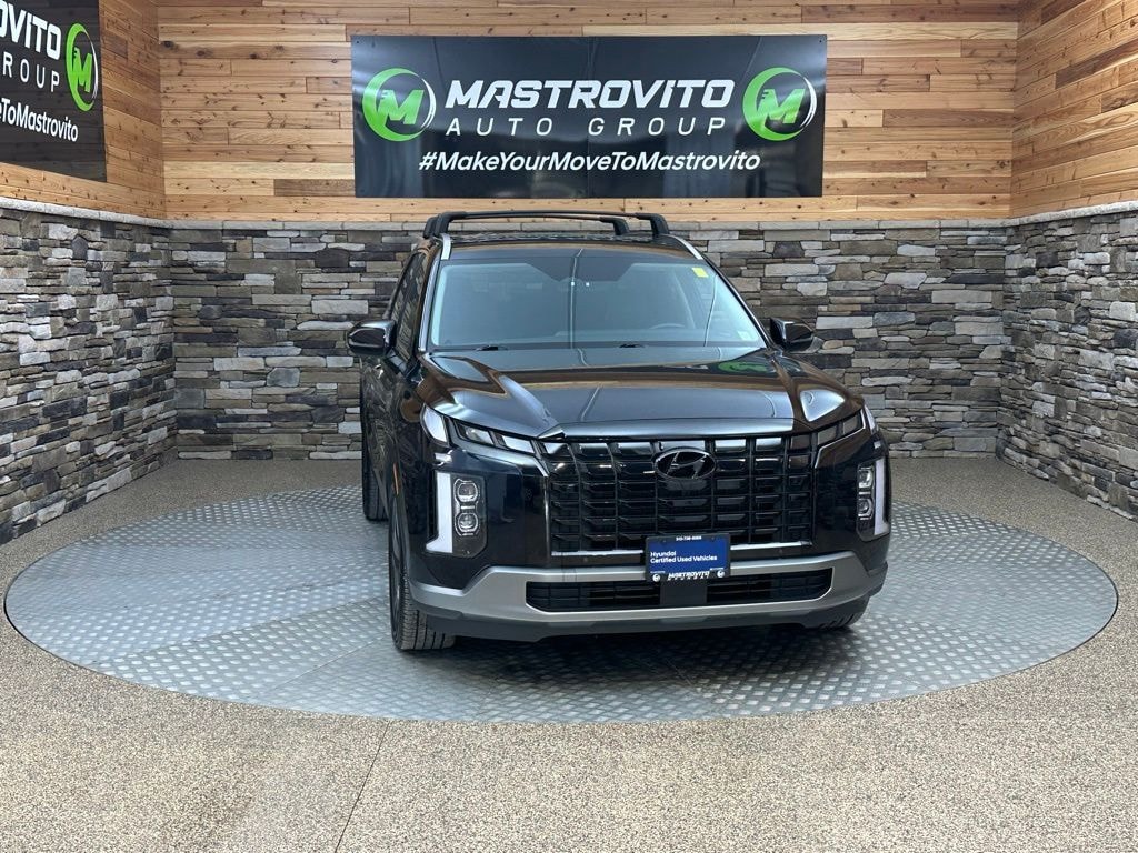 2023 Hyundai Palisade SEL Certified. Moonlight Cloud This Palisade SEL is nicely equipped with 8-Passenger Bench Seating (115-Volt AC Power Outlet, 12.3" Full-Digital Multi-Information Display, 3rd Row USB Outlets, 8-Passenger Seating, Acoustic Rear Side Glass, Auto Leveling Rear Suspension, Blind-Spot View Monitor, Driver 4-Way Power Lumbar Support, Driver Talk (In-Car Intercom), Forward Collision Avoidance Assist, Front Parking Sensors, harman/kardon® Audio System, Heated 2nd Row Seats, Heated Steering Wheel, Highway Driving Assist II (HDA), Hydro-Phobic Front Side Glass, Integrated Memory Driver Seat & Mirrors, Option Group 02, Option Group 03, Power Sunroof, Rear Side Window Sunshades, Surround View Monitor, Ventilated Front & 2nd-Row Seats, and Wheels: 20" x 7.5J Alloy), Hyundai Certified Used Vehicles Certified, 3.648 Axle Ratio, 3rd row seats: split-bench, 4-Wheel Disc Brakes, 6 Speakers, ABS brakes, Air Conditioning, Alloy wheels, AM/FM radio: SiriusXM, Apple CarPlay & Android Auto, Auto High-beam Headlights, Auto-dimming door mirrors, Auto-dimming Rear-View mirror, Automatic temperature control, Brake assist, Bumpers: body-color, Cargo Net, Cargo Tray, Carpeted Floor Mats, Delay-off headlights, Driver door bin, Driver vanity mirror, Dual front impact airbags, Dual front side impact airbags, Electronic Stability Control, Emergency communication system: Blue Link Connected Car Service (3-year complimentary subscription), Exterior Parking Camera Rear, First Aid Kit, Four wheel independent suspension, Front anti-roll bar, Front Bucket Seats, Front Center Armrest, Front dual zone A/C, Front reading lights, Fully automatic headlights, Garage door transmitter: HomeLink, H-Tex Leatherette Seat Trim, Heated door mirrors, Heated Front Bucket Seats, Heated front seats, Illuminated entry, Knee airbag, Low tire pressure warning, Navigation System, Occupant sensing airbag, Outside temperature display, Overhead airbag, Overhead console, Panic alarm, Passenger door bin, Passenger vanity mirror, Power door mirrors, Power driver seat, Power Liftgate, Power passenger seat, Power steering, Power windows, Radio data system, Radio: AM/FM/MP3 Audio System, Rear air conditioning, Rear anti-roll bar, Rear audio controls, Rear reading lights, Rear side impact airbag, Rear window defroster, Rear window wiper, Reclining 3rd row seat, Remote keyless entry, Roof Rack Cross Rails (DISC), Security system, Speed control, Speed-sensing steering, Split folding rear seat, Spoiler, Steering wheel mounted audio controls, Tachometer, Telescoping steering wheel, Tilt steering wheel, Traction control, Trip computer, Turn signal indicator mirrors, Variably intermittent wipers, and Wheels: 18" x 7.5J Machine-Faced Alloy.
