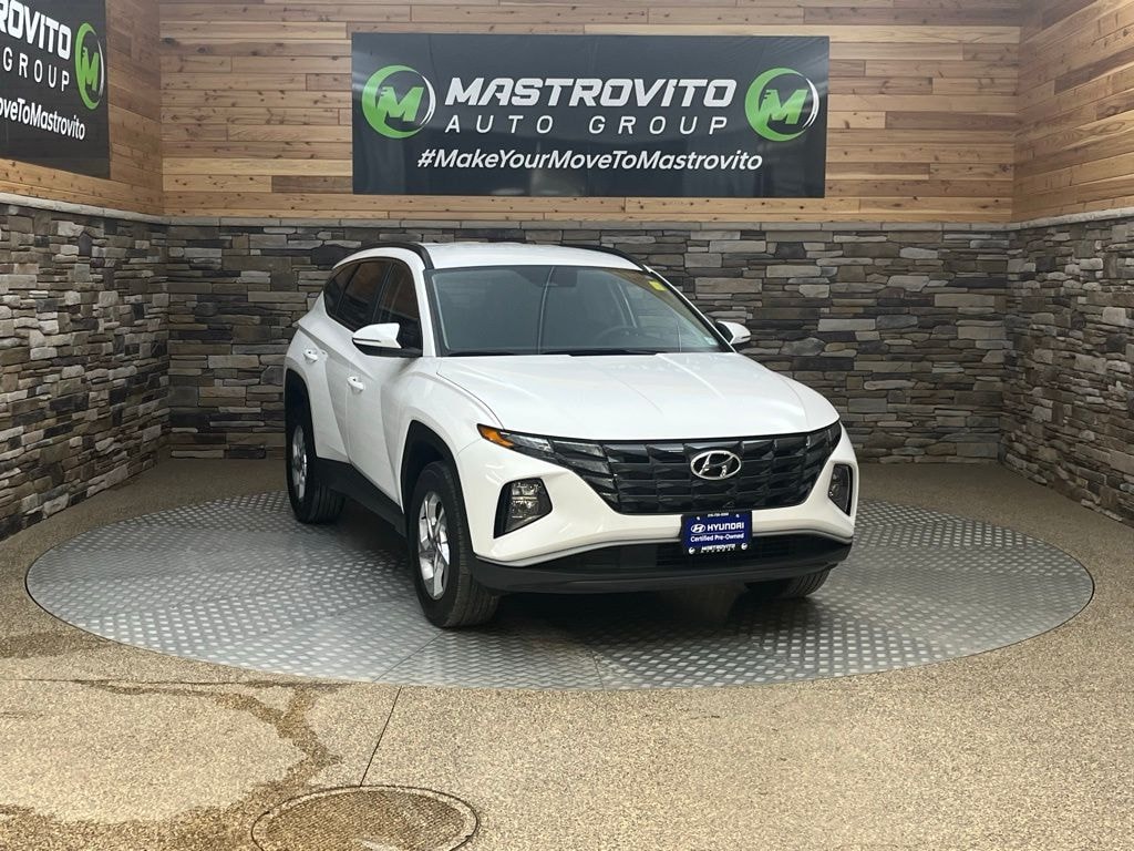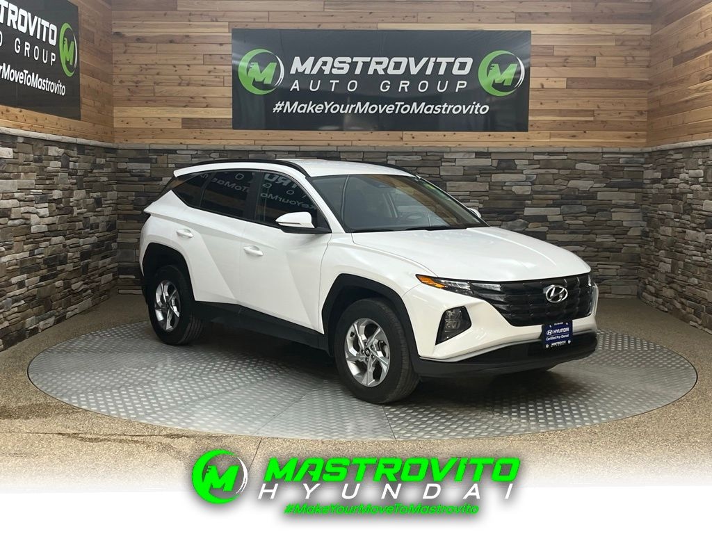 Recent Arrival! 2023 Hyundai Tucson SEL Certified. Serenity White Pearl This Tucson SEL is nicely equipped with Option Group 01, Hyundai Certified Used Vehicles Certified, AWD, 3.648 Axle Ratio, 4-Wheel Disc Brakes, 6 Speakers, ABS brakes, Air Conditioning, Alloy wheels, AM/FM radio: SiriusXM, Apple CarPlay & Android Auto, Auto High-beam Headlights, Brake assist, Bumpers: body-color, Cargo Net, Cargo Tray, Carpeted Floor Mats, Delay-off headlights, Driver door bin, Driver vanity mirror, Dual front impact airbags, Dual front side impact airbags, Electronic Stability Control, Emergency communication system: Blue Link Connected Car Service (3-year complimentary subscription), First Aid Kit, Four wheel independent suspension, Front and Rear Mudguards, Front anti-roll bar, Front Bucket Seats, Front Center Armrest, Front reading lights, Fully automatic headlights, H-Tex Seat Trim, Heated door mirrors, Heated Front Bucket Seats, Heated front seats, Illuminated entry, Low tire pressure warning, Occupant sensing airbag, Outside temperature display, Overhead airbag, Overhead console, Panic alarm, Passenger door bin, Passenger vanity mirror, Power door mirrors, Power driver seat, Power Liftgate, Power steering, Power windows, Radio data system, Radio: AM/FM/HD/SiriusXM Audio System, Rear anti-roll bar, Rear seat center armrest, Rear window defroster, Rear window wiper, Remote keyless entry, Roof rack: rails only, Security system, Speed control, Split folding rear seat, Spoiler, Stain & Odor Resistant Cloth Seat Trim, Steering wheel mounted audio controls, Tachometer, Telescoping steering wheel, Tilt steering wheel, Traction control, Trip computer, Turn signal indicator mirrors, Variably intermittent wipers, and Wheels: 17" x 7.0J" Alloy. AWD.