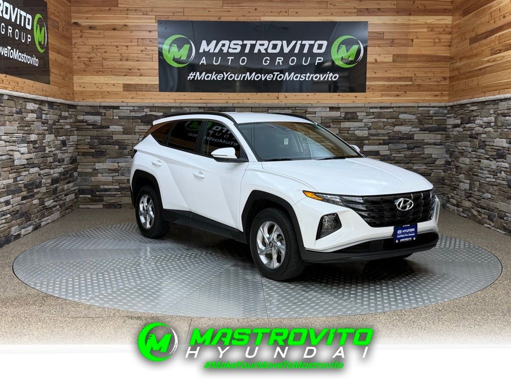 2023 Hyundai Tucson SEL Certified. Serenity White Pearl This Tucson SEL is nicely equipped with Option Group 01, Hyundai Certified Used Vehicles Certified, AWD, 3.648 Axle Ratio, 4-Wheel Disc Brakes, 6 Speakers, ABS brakes, Air Conditioning, Alloy wheels, AM/FM radio: SiriusXM, Apple CarPlay & Android Auto, Auto High-beam Headlights, Brake assist, Bumpers: body-color, Cargo Cover, Cargo Tray, Carpeted Floor Mats, Delay-off headlights, Driver door bin, Driver vanity mirror, Dual front impact airbags, Dual front side impact airbags, Electronic Stability Control, Emergency communication system: Blue Link Connected Car Service (3-year complimentary subscription), First Aid Kit, Four wheel independent suspension, Front anti-roll bar, Front Bucket Seats, Front Center Armrest, Front reading lights, Fully automatic headlights, H-Tex Seat Trim, Heated door mirrors, Heated Front Bucket Seats, Heated front seats, Illuminated entry, Low tire pressure warning, Occupant sensing airbag, Outside temperature display, Overhead airbag, Overhead console, Panic alarm, Passenger door bin, Passenger vanity mirror, Power door mirrors, Power driver seat, Power Liftgate, Power steering, Power windows, Radio data system, Radio: AM/FM/HD/SiriusXM Audio System, Rear anti-roll bar, Rear seat center armrest, Rear window defroster, Rear window wiper, Remote keyless entry, Roof rack: rails only, Security system, Speed control, Split folding rear seat, Spoiler, Stain & Odor Resistant Cloth Seat Trim, Steering wheel mounted audio controls, Tachometer, Telescoping steering wheel, Tilt steering wheel, Traction control, Trip computer, Turn signal indicator mirrors, Variably intermittent wipers, Wheel Locks, and Wheels: 17" x 7.0J" Alloy. AWD.