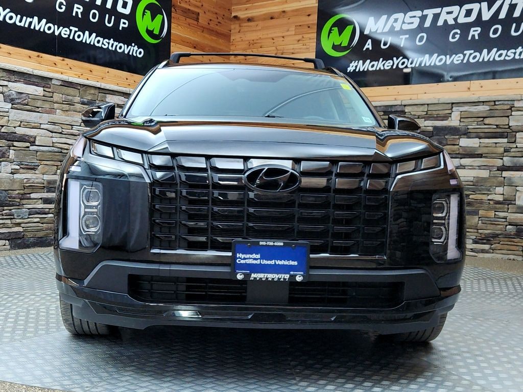 2024 Hyundai Palisade XRT Certified. Abyss Black Pearl This Palisade XRT is nicely equipped with Option Group 01, Hyundai Certified Used Vehicles Certified, 3.648 Axle Ratio, 3rd row seats: split-bench, 4-Wheel Disc Brakes, 6 Speakers, ABS brakes, Air Conditioning, Alloy wheels, AM/FM radio: SiriusXM, Apple CarPlay & Android Auto, Auto High-beam Headlights, Auto-dimming door mirrors, Auto-dimming Rear-View mirror, Auto-leveling suspension, Automatic temperature control, Brake assist, Bumpers: body-color, Cargo Cover/Screen, Cargo Tray, Carpeted Floor Mats, Delay-off headlights, Driver door bin, Driver vanity mirror, Dual front impact airbags, Dual front side impact airbags, Electronic Stability Control, Emergency communication system, Exterior Parking Camera Rear, First Aid Kit, Four wheel independent suspension, Front anti-roll bar, Front Bucket Seats, Front Center Armrest, Front dual zone A/C, Front reading lights, Fully automatic headlights, H-Tex Leatherette Seat Trim, Heated door mirrors, Heated Front Bucket Seats, Heated front seats, Illuminated entry, Knee airbag, Low tire pressure warning, Navigation System, Occupant sensing airbag, Outside temperature display, Overhead airbag, Overhead console, Panic alarm, Passenger door bin, Passenger vanity mirror, Power door mirrors, Power driver seat, Power Liftgate, Power moonroof, Power passenger seat, Power steering, Power windows, Radio data system, Radio: AM/FM/MP3 Audio System, Rear air conditioning, Rear anti-roll bar, Rear audio controls, Rear reading lights, Rear side impact airbag, Rear window defroster, Rear window wiper, Reclining 3rd row seat, Remote keyless entry, Roof rack, Security system, Speed control, Speed-sensing steering, Split folding rear seat, Spoiler, Steering wheel mounted audio controls, Tachometer, Telescoping steering wheel, Tilt steering wheel, Tow Hitch, Traction control, Trip computer, Turn signal indicator mirrors, Variably intermittent wipers, Wheel Locks, and Wheels: 20" x 7.5J Dark Alloy w/Rugged Styling.