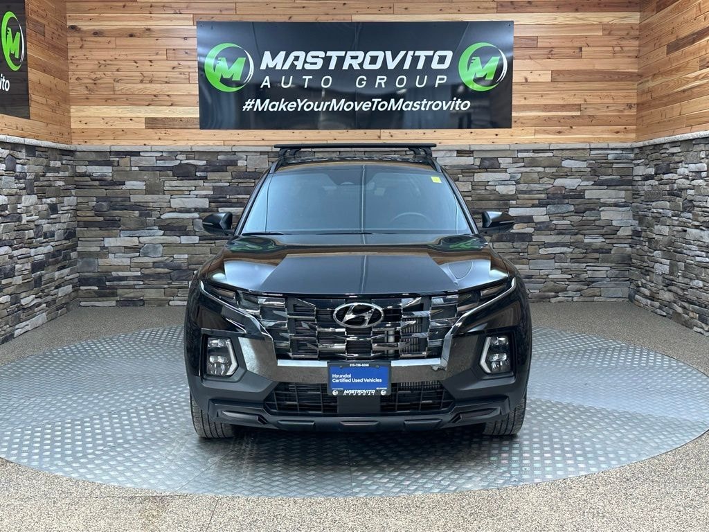 2024 Hyundai Santa Cruz XRT Certified. Phantom Black This Santa Cruz XRT is nicely equipped with Option Group 01, Hyundai Certified Used Vehicles Certified, 18" x 7.5J Alloy Wheels, 3.316 Axle Ratio, 4-Wheel Disc Brakes, 6 Speakers, ABS brakes, Air Conditioning, Alloy wheels, AM/FM radio: SiriusXM, Apple CarPlay & Android Auto, Auto High-beam Headlights, Auto-dimming Rear-View mirror, Auto-leveling suspension, Automatic temperature control, Bed Cargo Net, Bed Mat, Bodyside moldings, Brake assist, Bumpers: body-color, Carpeted Floor Mats, Delay-off headlights, Driver door bin, Driver vanity mirror, Dual front impact airbags, Dual front side impact airbags, Electronic Stability Control, Emergency communication system: Bluelink+, Envelope Cargo Net, Exterior Parking Camera Rear, First Aid Kit, Four wheel independent suspension, Front anti-roll bar, Front Bucket Seats, Front Center Armrest, Front dual zone A/C, Front reading lights, Fully automatic headlights, H-Tex Leatherette Seating Surfaces, Heated door mirrors, Heated Front Bucket Seats, Heated front seats, Illuminated entry, Leather Shift Knob, Leather steering wheel, Low tire pressure warning, Navigation System, Occupant sensing airbag, Outside temperature display, Overhead airbag, Overhead console, Panic alarm, Passenger door bin, Passenger vanity mirror, Power door mirrors, Power driver seat, Power moonroof, Power steering, Power windows, Radio data system, Radio: AM/FM/HD Audio System, Rear anti-roll bar, Rear side impact airbag, Rear step bumper, Rear window defroster, Remote keyless entry, Roof Rack Cross Rails, Security system, Speed control, Speed-sensing steering, Split folding rear seat, Spoiler, Steering wheel mounted audio controls, Tachometer, Telescoping steering wheel, Tilt steering wheel, Traction control, Trip computer, Turn signal indicator mirrors, and Variably intermittent wipers.