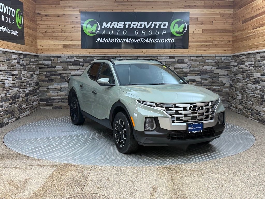 Recent Arrival! 2024 Hyundai Santa Cruz SEL Certified. Sage Gray This Santa Cruz SEL is nicely equipped with Activity Package (10.25" Digital Instrument Cluster, 115V AC Power Inverter in Bed, 15W Wireless Phone, Conventional Power Sunroof, Dual C-Channel Utility Tracks on Bed Side, Integrated Tonneau Cover, LED Bed Lighting, LED Front & Rear Interior Lights, Option Group 02, Radio: AM/FM/HD Audio System (P2), Rear Sliding Glass Window w/Defroster, and Roof Side Rails), Hyundai Certified Used Vehicles Certified, 18" x 7.5J Alloy Wheels, 4-Wheel Disc Brakes, 4.081 Axle Ratio, 6 Speakers, ABS brakes, Air Conditioning, Alloy wheels, AM/FM radio: SiriusXM, Apple CarPlay & Android Auto, Auto High-beam Headlights, Auto-leveling suspension, Automatic temperature control, Brake assist, Bumpers: body-color, Carpeted Floor Mats, Delay-off headlights, Driver door bin, Driver vanity mirror, Dual front impact airbags, Dual front side impact airbags, Electronic Stability Control, Emergency communication system: Bluelink+, Exterior Parking Camera Rear, Four wheel independent suspension, Front anti-roll bar, Front Bucket Seats, Front Center Armrest, Front dual zone A/C, Front reading lights, Fully automatic headlights, Heated door mirrors, Heated Front Bucket Seats, Heated front seats, Illuminated entry, Low tire pressure warning, Occupant sensing airbag, Outside temperature display, Overhead airbag, Overhead console, Panic alarm, Passenger door bin, Passenger vanity mirror, Power door mirrors, Power driver seat, Power steering, Power windows, Radio data system, Radio: AM/FM/HD Audio System, Rear anti-roll bar, Rear side impact airbag, Rear step bumper, Rear window defroster, Remote keyless entry, Security system, Side Steps, Speed control, Speed-sensing steering, Split folding rear seat, Spoiler, Stain & Odor Resistant Cloth Seat Trim, Steering wheel mounted audio controls, Tachometer, Telescoping steering wheel, Tilt steering wheel, Traction control, Trip computer, Turn signal indicator mirrors, and Variably intermittent wipers.