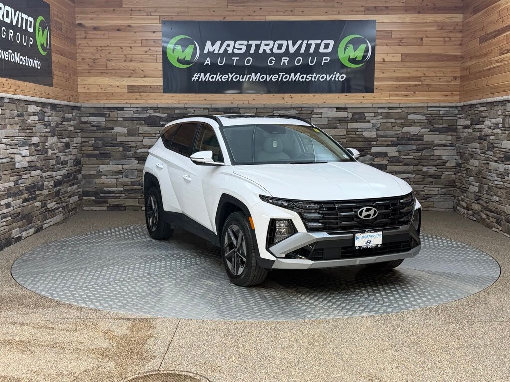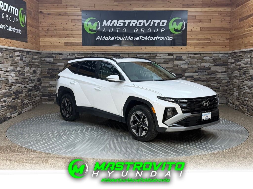 2025 Hyundai Tucson SEL Convenience Certified. White Pearl This Tucson SEL Convenience is nicely equipped with Option Group 01, Hyundai Certified Used Vehicles Certified, AWD, 18" Alloy Wheels, 4-Wheel Disc Brakes, 6 Speakers, ABS brakes, Air Conditioning, Alloy wheels, AM/FM radio: SiriusXM, Apple CarPlay & Android Auto, Auto High-beam Headlights, Auto-dimming Rear-View mirror, Automatic temperature control, Brake assist, Bumpers: body-color, Cargo Tray, Carpeted Floor Mats, Delay-off headlights, Driver door bin, Driver vanity mirror, Dual front impact airbags, Dual front side impact airbags, Electronic Stability Control, Emergency communication system: Bluelink+, Four wheel independent suspension, Front anti-roll bar, Front Bucket Seats, Front Center Armrest, Front dual zone A/C, Front reading lights, Fully automatic headlights, H-Tex Seat Trim, Heated door mirrors, Heated Front Bucket Seats, Heated front seats, Illuminated entry, Leather steering wheel, Low tire pressure warning, Navigation System, Occupant sensing airbag, Outside temperature display, Overhead airbag, Overhead console, Panic alarm, Passenger door bin, Passenger vanity mirror, Power door mirrors, Power driver seat, Power Liftgate, Power moonroof, Power steering, Power windows, Radio data system, Radio: AM/FM/HD Audio System, Rear anti-roll bar, Rear reading lights, Rear seat center armrest, Rear side impact airbag, Rear window defroster, Rear window wiper, Remote keyless entry, Security system, Speed control, Split folding rear seat, Spoiler, Steering wheel mounted audio controls, Tachometer, Telescoping steering wheel, Tilt steering wheel, Tow Hitch, Traction control, Trip computer, Turn signal indicator mirrors, and Variably intermittent wipers. AWD.