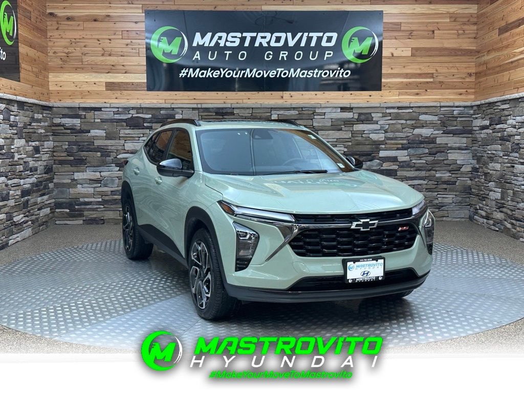 2024 Chevrolet Trax 2RS Cacti Green This Trax 2RS is nicely equipped with Driver Confidence Package (Adaptive Cruise Control, Lane Change Alert w/Side Blind Zone Alert, and Rear Cross-Traffic Alert), License Plate Front Mounting Package, Preferred Equipment Group 2RS, Sunroof Package (Power Sliding Glass Sunroof w/Manual Shade and Wireless Charging), 2-Way Adjustable Front Head Restraints, 3.50 Final Drive Axle Ratio, 4-Way Manual Front Passenger Seat Adjuster, 4-Wheel Disc Brakes, 6 Speakers, 6-Speaker Audio System Feature, 6-Way Manual Driver Seat Adjuster, ABS brakes, Air Conditioning, Alloy wheels, AM/FM radio: SiriusXM, Auto High-beam Headlights, Automatic temperature control, Brake assist, Bumpers: body-color, Compass, Delay-off headlights, Driver door bin, Driver vanity mirror, Dual front impact airbags, Dual front side impact airbags, Electronic Stability Control, Emergency communication system: OnStar and Chevrolet connected services capable, Evotex Seat Trim, Exterior Parking Camera Rear, Front anti-roll bar, Front Bucket Seats, Front Center Armrest, Front reading lights, Front wheel independent suspension, Fully automatic headlights, Heated door mirrors, Heated Driver & Front Passenger Seats, Heated front seats, Heated steering wheel, Illuminated entry, Low tire pressure warning, Occupant sensing airbag, Outside temperature display, Overhead airbag, Overhead console, Panic alarm, Passenger door bin, Passenger vanity mirror, Power door mirrors, Power steering, Power windows, Premium audio system: Chevrolet Infotainment 3, Radio data system, Radio: Audio System w/AM/FM, Rear Park Assist (DISC), Rear window defroster, Rear window wiper, Remote keyless entry, Security system, SiriusXM, Speed control, Split folding rear seat, Spoiler, Sport steering wheel, Steering wheel mounted audio controls, Tachometer, Telescoping steering wheel, Tilt steering wheel, Traction control, Trip computer, Variably intermittent wipers, and Wheels: 19" Black-Painted Machined Aluminum.