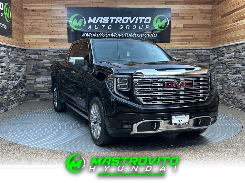 2023 GMC Sierra 1500 Denali Onyx Black This Sierra 1500 Denali is nicely equipped with Denali Reserve Package (GMC MultiPro Power Steps, Power Sunroof, Wheel Locks (Set of 4) (LPO), and Wheels: 22" x 9" Painted Aluminum), Preferred Equipment Group 5SA (120-Volt Bed Mounted Power Outlet, 120-Volt Instrument Panel Power Outlet, 170 Amp Alternator, 2 Charge/Data USB Ports Inside Center Console, 2 Type-C Charge-Only Rear USB Ports, 2 USB Ports, Auto-Locking Rear Differential, Auxiliary External Transmission Oil Cooler, Bed View Camera, Chrome Header w/Signature Denali Chrome Grille, Chrome Recovery Hooks, Chrome Wheel To Wheel Assist Steps, Color-Keyed Carpeting Floor Covering, Compass, Deep-Tinted Glass, Electric Rear-Window Defogger, Electrical Steering Column Lock, Floor-Mounted Center Console, Front Rainsensing Wipers, GMC Connected Access Capable, HD Surround Vision, Heated 2nd Row Outboard Seats, Heated Driver & Front Outboard Passenger Seating, Heavy-Duty Air Filter, Hill Descent Control, Hitch Guidance w/Hitch View, In-Vehicle Trailering App, Integrated Trailer Brake Controller, Keyless Open & Start, LED Cargo Area Lighting, OnStar & GMC Connected Services Capable, Perimeter Lighting, Power Door Locks, Power Front Passenger Windows w/Express Up/Down, Power Front Windows w/Driver Express Up/Down, Power Rake & Telescoping Steering Column, Power Rear Windows w/Express Down, Power Sliding Rear Window w/Rear Defogger, Premium Bose 7-Speaker Sound System, Push Button Start, Rear Cross Traffic Braking, Rear Pedestrian Detection, Rear Wheelhouse Liners, Remote Vehicle Starter System, SiriusXM w/360L, Spray-On Pickup Bed Liner w/Denali Logo, Steering Wheel Audio Controls, Theft Deterrent System (Unauthorized Entry), Trailer Camera Provisions, Trailer Side Blind Zone Alert, Ultrasonic Front & Rear Park Assist, Universal Home Remote, Ventilated Driver & Front Passenger Seats, Wi-Fi Hotspot Capable, Wireless Charging, and Wireless Phone Projection), Technology Package (Adaptive Cruise Control, Multicolor 15" Diagonal Head-Up Display, and Rear Camera Mirror), Trailering Package (Hitch Guidance), 10-Speed Automatic, 4WD, Atmosphere/Brownstone Leather, 10-Way Power Driver Seat Adjuster w/Lumbar, 10-Way Power Passenger Seat Adjuster w/Lumbar, 3.23 Rear Axle Ratio, 4-Wheel Disc Brakes, 7 Speakers, ABS brakes, Adaptive suspension, Air Conditioning, Alloy wheels, AM/FM radio, Apple CarPlay/Android Auto, Auto High-beam Headlights, Auto-dimming door mirrors, Auto-dimming Rear-View mirror, Automatic Emergency Braking, Automatic temperature control, Body Color Wheel Arch Moldings (LPO), Brake assist, Buckle to Drive, Bumpers: body-color, Delay-off headlights, Denali Premium Suspension w/Adaptive Ride Control, Driver door bin, Driver Memory, Driver vanity mirror, Dual front impact airbags, Dual front side impact airbags, Electronic Stability Control, Emergency communication system: OnStar and GMC connected services capable, Engine Block Heater, Following Distance Indicator, Forge Perforated Leather Seat Trim, Forward Collision Alert, Front anti-roll bar, Front Bucket Seats, Front Center Armrest, Front dual zone A/C, Front fog lights, Front License Plate Kit, Front Pedestrian Braking, Front reading lights, Front wheel independent suspension, Fully automatic headlights, Garage door transmitter, Genuine wood console insert, Genuine wood dashboard insert, Genuine wood door panel insert, Heated door mirrors, Heated front seats, Heated rear seats, Heated steering wheel, Illuminated entry, IntelliBeam Automatic High Beam On/Off, Lane Keep Assist w/Lane Departure Warning, Low tire pressure warning, Memory seat, Navigation System, Not Equipped w/Steering Column Lock, Occupant sensing airbag, Outside temperature display, Overhead airbag, Overhead console, Panic alarm, Passenger door bin, Passenger vanity mirror, Power door mirrors, Power driver seat, Power passenger seat, Power steering, Power windows, Premium audio system: GMC Infotainment System, Radio d