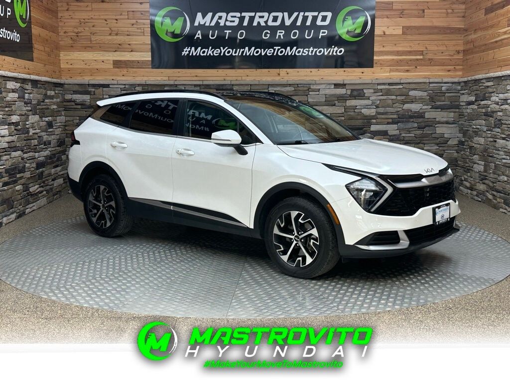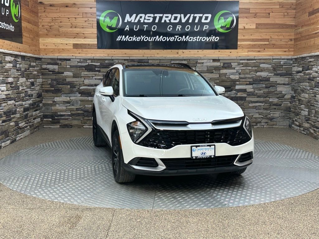 2023 Kia Sportage Hybrid EX Snow White Pearl This Sportage Hybrid EX is nicely equipped with EX Premium Package (LED Interior Lighting, Panoramic Sunroof, and Smart Power Liftgate), 1.6L Turbo GDI 4-Cylinder, Navigation System, 4-Wheel Disc Brakes, 6 Speakers, ABS brakes, Air Conditioning, Alloy wheels, AM/FM radio: SiriusXM, Apple CarPlay & Android Auto, Auto High-beam Headlights, Automatic temperature control, Axle Ratio: 3.32, Brake assist, Bumpers: body-color, Carpet Floor Mats, Compass, Delay-off headlights, Driver door bin, Driver vanity mirror, Dual front impact airbags, Dual front side impact airbags, Electronic Stability Control, Emergency communication system, Four wheel independent suspension, Front anti-roll bar, Front Bucket Seats, Front Center Armrest, Front dual zone A/C, Fully automatic headlights, Heated door mirrors, Heated Front Bucket Seats, Heated front seats, Heated steering wheel, Illuminated entry, Low tire pressure warning, Occupant sensing airbag, Outside temperature display, Overhead airbag, Overhead console, Panic alarm, Passenger door bin, Passenger vanity mirror, Power door mirrors, Power driver seat, Power steering, Power windows, Radio: AM/FM/HD Audio System, Rain sensing wipers, Rear anti-roll bar, Rear seat center armrest, Rear window defroster, Rear window wiper, Remote keyless entry, Security system, Speed control, Speed-sensing steering, Split folding rear seat, Spoiler, Steering wheel mounted audio controls, SynTex Leatherette Seat Trim, Tachometer, Telescoping steering wheel, Tilt steering wheel, Traction control, Trip computer, Turn signal indicator mirrors, Variably intermittent wipers, Wheel Locks, and Wheels: 18" x 7.5J Machined Alloy. 1.6L Turbo GDI 4-Cylinder, Navigation System.