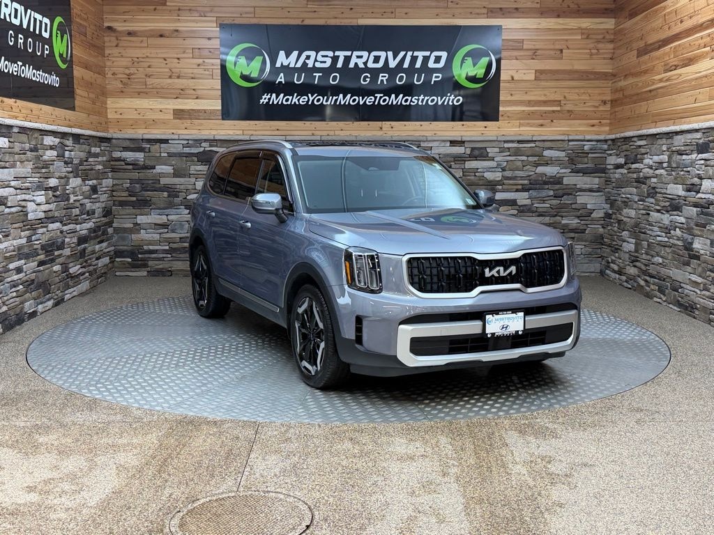 Recent Arrival! 2025 Kia Telluride EX Everlasting Silver This Telluride EX is nicely equipped with 3rd row seats: split-bench, 4-Wheel Disc Brakes, 6 Speakers, ABS brakes, Air Conditioning, Alloy wheels, AM/FM radio: SiriusXM, Apple CarPlay & Android Auto, Auto High-beam Headlights, Auto-dimming Rear-View mirror, Automatic temperature control, Brake assist, Bumpers: body-color, Carpeted Floor Mats, Compass, Delay-off headlights, Driver door bin, Driver vanity mirror, Dual front impact airbags, Dual front side impact airbags, Electronic Stability Control, Emergency communication system: 911 Connect, Exterior Parking Camera Rear, Four wheel independent suspension, Front anti-roll bar, Front Bucket Seats, Front Center Armrest, Front dual zone A/C, Front reading lights, Fully automatic headlights, Heated & Ventilated Front Bucket Seats, Heated door mirrors, Heated front seats, Illuminated entry, Knee airbag, Leather Seat Trim, Leather Shift Knob, Leather steering wheel, Low tire pressure warning, Mud Guard Kit, Navigation System, Occupant sensing airbag, Outside temperature display, Overhead airbag, Overhead console, Panic alarm, Passenger door bin, Passenger vanity mirror, Power door mirrors, Power driver seat, Power Liftgate, Power moonroof, Power passenger seat, Power steering, Power windows, Radio data system, Radio: AM/FM Display Audio System, Rear air conditioning, Rear anti-roll bar, Rear audio controls, Rear reading lights, Rear side impact airbag, Rear window defroster, Rear window wiper, Reclining 3rd row seat, Remote keyless entry, Security system, Speed control, Speed-sensing steering, Split folding rear seat, Spoiler, Steering wheel mounted audio controls, Tachometer, Telescoping steering wheel, Tilt steering wheel, Tow Hitch w/Cover, Traction control, Trip computer, Turn signal indicator mirrors, Variably intermittent wipers, and Ventilated front seats.