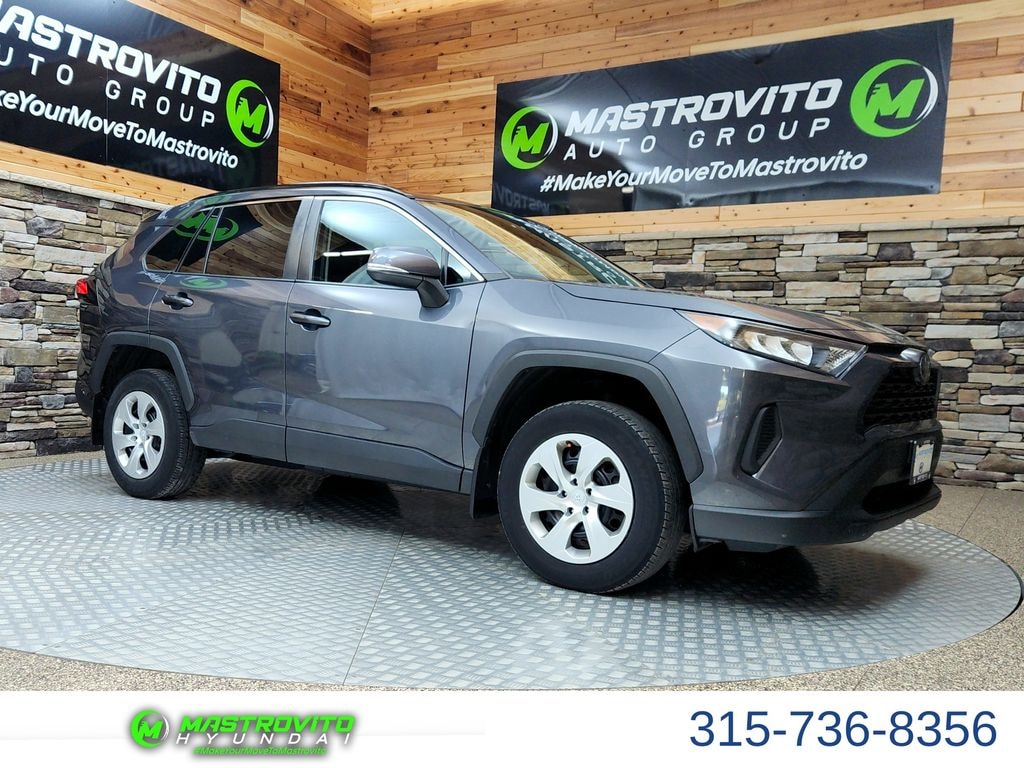 2020 Toyota RAV4 LE Gray This RAV4 LE is nicely equipped with AWD, Black Cloth, 17" Steel Wheels, 4-Wheel Disc Brakes, 6 Speakers, ABS brakes, Air Conditioning, AM/FM radio: SiriusXM, AM/FM Stereo, Apple CarPlay/Android Auto, Auto High-beam Headlights, Axle Ratio: 3.177, Brake assist, Bumpers: body-color, Driver door bin, Driver vanity mirror, Dual front impact airbags, Dual front side impact airbags, Electronic Stability Control, Emergency communication system: Entune Safety Connect, Exterior Parking Camera Rear, Fabric Seat Trim, Four wheel independent suspension, Front anti-roll bar, Front Bucket Seats, Front Center Armrest, Front reading lights, Illuminated entry, Knee airbag, Low tire pressure warning, Occupant sensing airbag, Outside temperature display, Overhead airbag, Overhead console, Panic alarm, Passenger door bin, Passenger vanity mirror, Power door mirrors, Power steering, Power windows, Radio data system, Rear anti-roll bar, Rear seat center armrest, Rear window defroster, Rear window wiper, Remote keyless entry, Roof rack: rails only, Speed control, Speed-sensing steering, Split folding rear seat, Spoiler, Steering wheel mounted audio controls, Tachometer, Telescoping steering wheel, Tilt steering wheel, Traction control, and Trip computer. AWD, Black Cloth.
